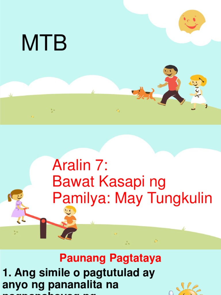 20200321 Ito ay ang pagbibigay ng katangian sa isang bagay o tao sa pamamagitan ng paglalapat ng pangalan tawag katangian o gawain ngisang bagay sa bagay na ihinhahambing. Pamilya-Para sa Lakas ng mga Kabataan Ang mag-anak ay inorden ng Diyos. Gamit ang mga pandiwa - 2014428 daryltiqui9216 daryltiqui9216 27112018.