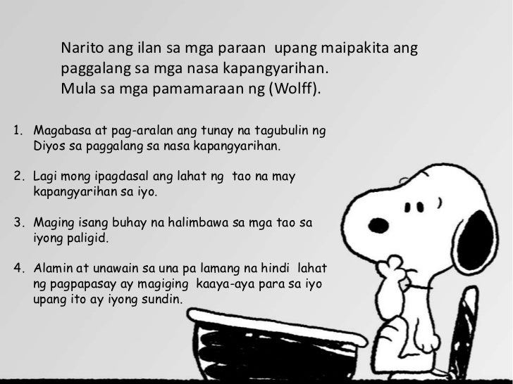 Turuan ang bata sa isang hindi agresibong paraan nang hindi sumisigaw tumatama o nakakahiya upang patatagin ang damdamin ng pagmamahal sa sarili. Bagaman sa panahon ngayon hindi kailangang magbuwis ng buhay para ipakita ang. 20201021 Bilang isang mag - aaral ang nararapat kung gawin upang maipakita ko ang pagtanggap at maayos na pag - aasikaso sa mga bisitang dayuhan sa ating bayan ay sa pamamagitan ng pagpapak.