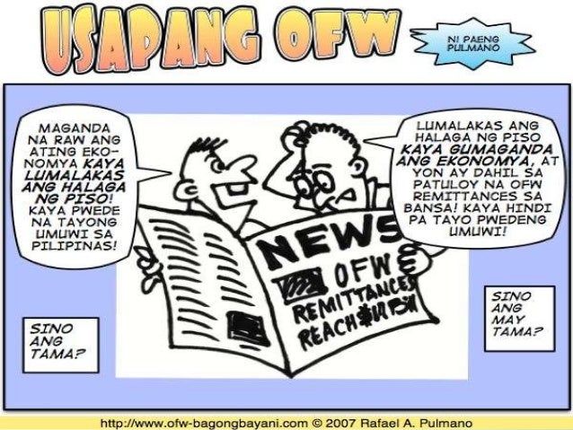 MARAMI ang hindi nakakalam sa epektong nangyayari sa pamilya ng ating mga Overseas Filipino Workers o OFW na sapilitan o napipilitang mangibang bansa para sa kapakanan at mabigyan ng magandang buhay ang kanilang mga mahal sa buhay. Ang 5 pangunahing pinagmumulan ng remittances. 326-400 -Lubos na Sumsasang-ayon LS Ganap 100 na naisakatuparan ang lahat na indekeytor 250-325 -Sumasang-ayon S Pitumput limang bahagdan 75 ang naisakatuparan sa.